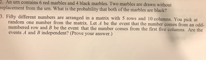 Answer by jim thompson5910 35156 show source. A marble is drawn from the urn without replacement and put aside without my seeing it. If a person takes one marble out of the jar then the 1 3 of the jar s marbles would be removed. Two marbles are chosen without replacement.